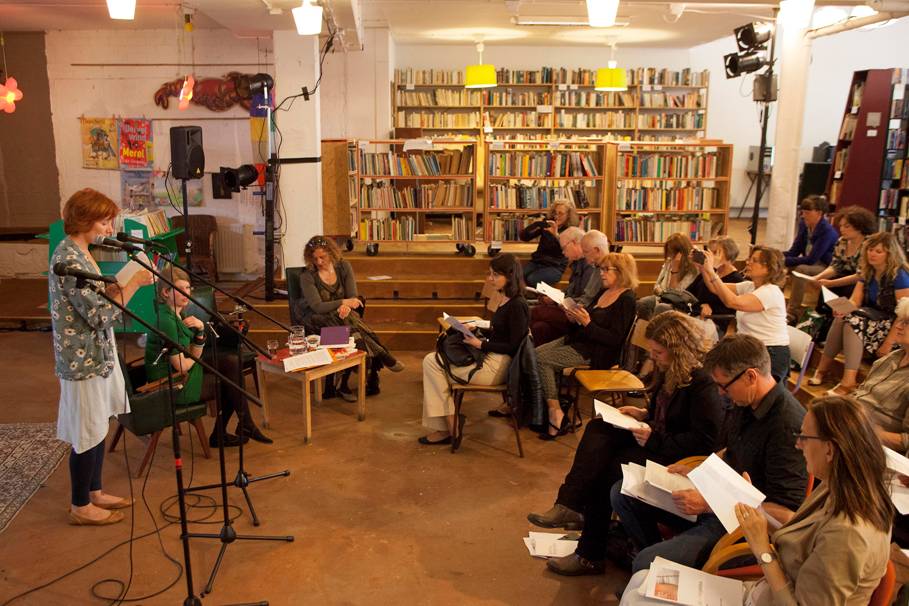 Justyna Bargielska trad op in de door vrijwilligers beheerde bibliotheek op uitnodiging van het Poetry International Festival. De avond begon met het voorlezen van de geselecteerde favoriete gedichten door de dichteres zelf – en ook door het publiek dus! De gasten die geen Pools spraken, konden gebruik maken van de vertalingen naar het Engels en Nederlands, uitgegeven in het kader van het project Versopolis.
